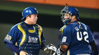 [OSEN=부산, 지형준 기자] 27일 오후 부산 사직구장에서 '2014 한국야쿠르트 세븐 프로야구' 롯데 자이언츠와 NC 다이노스의 경기가 열렸다. 8회말 데뷔 첫 포수 마스크를 쓴 NC 권희동이 2사에서 롯데 박종윤의 2루타에 1루 베이스