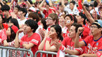 [OSEN=이대선 기자] 대한민국과 벨기에의 2014 FIFA 월드컵 H조 조별예선이 열린 27일 오전 서울 광화문광장에서 길거리 응원전이 펼쳐졌다. 광화문 광장을 가득 메운 축구팬이 전반 벨기에 드푸르 퇴장에 환호하고 있다. H조 최하
