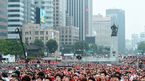 [OSEN=이대선 기자] 대한민국과 벨기에의 2014 FIFA 월드컵 H조 조별예선이 열린 27일 오전 서울 광화문광장에서 길거리 응원전이 펼쳐졌다. 광화문 광장을 가득 메운 축구팬이 열띤 응원을 펼치고 있다. H조 최하위 한국이 조 1위 벨