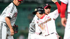 [OSEN=인천, 백승철 기자] 28일 오후 인천 문학구장에서 열린 '2014 한국야쿠르트 세븐 프로야구' SK 와이번스와 LG 트윈스의 경기 9회초 박정배의 투구가 선두타자 손주인의 몸에 맞자 박정배가 홈플레이트로 다가와 이재원과 이야