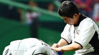 [OSEN=인천, 백승철 기자] 28일 오후 인천 문학구장에서 열린 '2014 한국야쿠르트 세븐 프로야구' SK 와이번스와 LG 트윈스의 경기 9회초 선두타자 손주인이 박정배의 투구에 몸을 맞은 후 치료를 받고 있다. SK는 고효준을 선발 내세