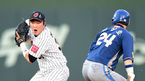 [OSEN=부산, 지형준 기자] 28일 오후 부산 사직구장에서 '2014 한국야쿠르트 세븐 프로야구' 롯데 자이언츠와 NC 다이노스의 경기가 열렸다. 8회초 2사 1루에서 NC 박민우가 내야땅볼을 날리고 병살로 물러나자 김경문 감독이 그라운