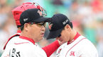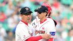 [OSEN=인천, 백승철 기자] 28일 오후 인천 문학구장에서 열린 '2014 한국야쿠르트 세븐 프로야구' SK 와이번스와 LG 트윈스의 경기 6회초 무사 1,2루 고효준이 마운드를 내려가며 이만수 감독의 격려를 받고 있다. SK는 고효준을 선발