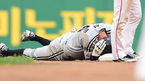 [OSEN=인천, 백승철 기자] 28일 오후 인천 문학구장에서 열린 '2014 한국야쿠르트 세븐 프로야구' SK 와이번스와 LG 트윈스의 경기 6회초 무사 1,2루 이진영의 1루수앞 땅볼상황, 1루수의 2루송구에 얼굴을 맞은 정성훈이 고통을 호소