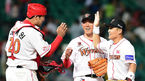 [OSEN=인천, 백승철 기자] 28일 오후 인천 문학구장에서 열린 '2014 한국야쿠르트 세븐 프로야구' SK 와이번스와 LG 트윈스의 경기 종료 후 이재원, 박정배, 이대수가 하이파이브를 하고 있다. 1,017일 만에 선발승을 따낸 고효준의 호