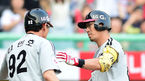 [OSEN=인천, 백승철 기자] 29일 오후 인천 문학구장에서 열린 '2014 한국야쿠르트 세븐 프로야구' SK 와이번스와 LG 트윈스의 경기 4회초 선두타자 정성훈이 솔로홈런을 치고 김민호 코치와 하이파이브를 하고 있다. 2연패에 빠진 LG