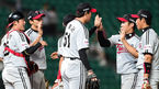 [OSEN=인천, 백승철 기자] 29일 오후 인천 문학구장에서 열린 '2014 한국야쿠르트 세븐 프로야구' SK 와이번스와 LG 트윈스의 경기 종료 후 SK 선수들이 그라운드를 빠져나가고 있다. LG가 타선 대폭발과 불펜진의 호투에 힘입어 SK에