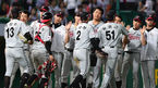 [OSEN=인천, 백승철 기자] 29일 오후 인천 문학구장에서 열린 '2014 한국야쿠르트 세븐 프로야구' SK 와이번스와 LG 트윈스의 경기 종료 후 정성훈이 동료들과 하이파이브를 하고 있다. LG가 타선 대폭발과 불펜진의 호투에 힘입어 SK