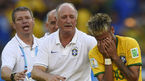 Brazil's forward Neymar cries of joy at the end of the round of 16 football match between Brazil and Chile at The Mineirao Stadium in Belo Horizonte during the 2014 FIFA World Cup on June 28, 2014....