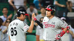 [OSEN=인천, 백승철 기자] 29일 오후 인천 문학구장에서 열린 '2014 한국야쿠르트 세븐 프로야구' SK 와이번스와 LG 트윈스의 경기 7회초 2사 1루 정의윤이 투런 홈런을 치고 최태원 코치와 하이파이브를 하고 있다. 2연패에 빠진 LG가
