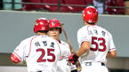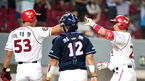 [OSEN=광주, 지형준 기자] 1일 오후 광주 챔피언스필드에서 '2014 한국야쿠르트 세븐 프로야구' KIA 타이거즈와 두산 베어스의 경기가 열렸다. 6회말 무사 1루에서 KIA 이범호가 투런포를 날리고 안치홍과 세레모니를 하고 있다. 지금