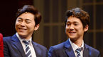 [OSEN=김경섭 기자] 1일 오후 대학로 홍익대 아트센터 대극장에서 열린 뮤지컬 '블러드 브라더스'에서 배우 조정석과 송창의가부드러운 미소로 질의응답 시간을 갖고 있다. 뮤지컬 '블러드 브라더스'는 비극을 향해 치닫는 쌍둥