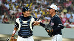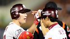 [OSEN=광주, 지형준 기자] 1일 오후 광주 챔피언스필드에서 '2014 한국야쿠르트 세븐 프로야구' KIA 타이거즈와 두산 베어스의 경기가 열렸다. 6회말 수비를 마치고 두산 노경은이 더그아웃으로 향하며 홍성흔과 하이파이브를 하고