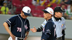 [OSEN=광주, 지형준 기자] 1일 오후 광주 챔피언스필드에서 '2014 한국야쿠르트 세븐 프로야구' KIA 타이거즈와 두산 베어스의 경기가 열렸다. 8회말 무사 1루에서 두산 송일수 감독이 KIA 이대형의 번트 모션에 스윙 판정이 나오지