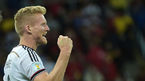 [OSEN=사진팀] 1일(한국시간) 오전(한국시간) 브라질 포르투 알레그리의 에스타디오 베이라-리오 경기장에서 열린 2014 브라질 월드컵 16강전 독일-알제리의 경기, 연장 전반 독일 쉬를레가 선취골을 넣고 환호하고 있다. 독일은 G
