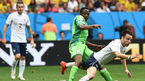 [OSEN=사진팀] 1일(한국시간) 브라질 브라질리아 에스타디오 나시오날 경기장에서 진행된 '2014 브라질 월드컵' 프랑스와 나이지리아의 16강전 경기, 전반 나이지리아 옌예마 골키퍼가 프랑스 포그바의 시저스킥을 막아내고 있다