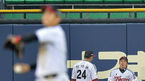 [OSEN=잠실, 이대선 기자] 2일 오후 서울 잠실야구장에서 '2014 한국야쿠르트 세븐 프로야구' LG 트윈스와 한화 이글스의 경기가 열렸다. 4회초 무사에서 한화 김경언의 땅볼타구를 처리하는 과정에서 약간의 고통을 호소한 LG 리오