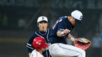 [OSEN=광주, 지형준 기자] 3일 오후 광주 챔피언스필드에서 '2014 한국야쿠르트 세븐 프로야구' KIA 타이거즈와 두산 베어스의 경기가 열렸다. 9회초 마운드에 오른 KIA 어센시오가 두산 정수빈에 초구에 솔로포를 허용하며 타구를