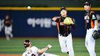 [OSEN=목동,박준형 기자] 3일 오후 서울 목동구장에서 열린 2014 한국야쿠르트 세븐 프로야구 넥센 히어로즈와 롯데 자이언츠의 경기, 5회말 1사 만루 넥센 유한준의 병살타때 롯데 신본기 유격수가 1루로 송구하고 있다. 이날 경기