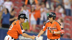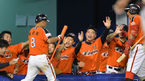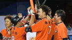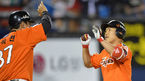 [OSEN=광주, 지형준 기자] 3일 오후 광주 챔피언스필드에서 '2014 한국야쿠르트 세븐 프로야구' KIA 타이거즈와 두산 베어스의 경기가 열렸다. 6회말 2사에서 KIA 김주찬이 솔로포를 날리고 이대형과 하이파이브를 하고 있다. 좌완 에