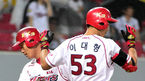 [OSEN=잠실, 이대선 기자] 3일 오후 서울 잠실야구장에서 '2014 한국야쿠르트 세븐 프로야구' LG 트윈스와 한화 이글스의 경기가 열렸다. 7회초 1사 1루에서 한화 정근우가 좌중월 투런 홈런을 치고 이종범 코치와 하이파이브를 하