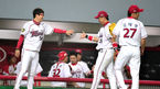[OSEN=광주, 지형준 기자] 3일 오후 광주 챔피언스필드에서 '2014 한국야쿠르트 세븐 프로야구' KIA 타이거즈와 두산 베어스의 경기가 열렸다. 6회초 수비를 마치고 무사 2루에서 교체된 KIA 양현종이 더그아웃에서 안치홍을 격려하