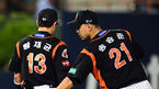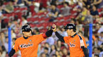 [OSEN=광주, 지형준 기자] 3일 오후 광주 챔피언스필드에서 '2014 한국야쿠르트 세븐 프로야구' KIA 타이거즈와 두산 베어스의 경기가 열렸다. 5회말 2사 1,2루에서 KIA 안치홍이 스리런포를 날리고 더그아웃에서 선동렬 감독과 하이