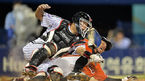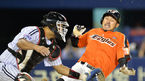 [OSEN=잠실, 이대선 기자] 3일 오후 서울 잠실야구장에서 '2014 한국야쿠르트 세븐 프로야구' LG 트윈스와 한화 이글스의 경기가 열렸다. 6회초 2사 2루에서 한화 고동진의 우전 적시타때 2루주자 김경언이 홈으로 쇄도하며 LG 포수