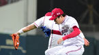 [OSEN=광주, 지형준 기자] 3일 오후 광주 챔피언스필드에서 '2014 한국야쿠르트 세븐 프로야구' KIA 타이거즈와 두산 베어스의 경기가 열렸다. 4회말 2사에서 두산 유희관이 KIA 김민우의 홈런성 파울 타구가 깜짝 놀라고 있다. 좌완