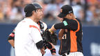 [OSEN=목동,박준형 기자] 3일 오후 서울 목동구장에서 열린 2014 한국야쿠르트 세븐 프로야구 넥센 히어로즈와 롯데 자이언츠의 경기, 1회말 5실점 역전 허용한 롯데 선발투수 송승준이 정민태 투수코치와 마운드서 이야기를 나누