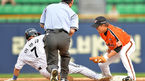 [OSEN=잠실, 이대선 기자] 3일 오후 서울 잠실야구장에서 '2014 한국야쿠르트 세븐 프로야구' LG 트윈스와 한화 이글스의 경기가 열렸다. 2회말 무사 1,2루에서 LG 이병규가 한화 포수 정범모의 견제때 급히 귀루하고 있다. LG는 우규