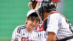 [OSEN=잠실, 이대선 기자] 3일 오후 서울 잠실야구장에서 '2014 한국야쿠르트 세븐 프로야구' LG 트윈스와 한화 이글스의 경기가 열렸다. 경기에 앞서 개그맨 허민이 시구를 마치고 LG 포수 최경철에게 공은 건네받고 있다. LG는 우규