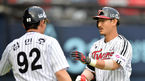 [OSEN=잠실, 이대선 기자] 3일 오후 서울 잠실야구장에서 '2014 한국야쿠르트 세븐 프로야구' LG 트윈스와 한화 이글스의 경기가 열렸다. 1회말 2사에서 LG 박용택이 좌월 솔로 홈런을 치고 최태원 코치와 하이파이브를 하고 있다. LG