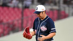 [OSEN=광주, 지형준 기자] 3일 오후 광주 챔피언스필드에서 '2014 한국야쿠르트 세븐 프로야구' KIA 타이거즈와 두산 베어스의 경기가 열렸다. 경기에 앞서 두산 유희관이 더그아웃에서 땀을 닦으며 경기를 준비하고 있다. 좌완 에