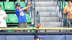 [OSEN=잠실, 이대선 기자] 3일 오후 서울 잠실야구장에서 '2014 한국야쿠르트 세븐 프로야구' LG 트윈스와 한화 이글스의 경기가 열렸다. 1회말 2사에서 한화 김경언이 LG 박용택의 홈런 타구를 잡으려 점프를 하고 있다. LG는 우규민