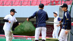 [OSEN=광주, 지형준 기자] 3일 오후 광주 챔피언스필드에서 '2014 한국야쿠르트 세븐 프로야구' KIA 타이거즈와 두산 베어스의 경기가 열렸다. 경기에 앞서 부슬비가 내리자 두산 김현수가 그라운드를 바라보며 생각에 잠겨 있다.