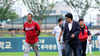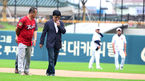 [OSEN=광주, 지형준 기자] 3일 오후 광주 기아 챔피언스필드에서 '2014 한국야쿠르트 세븐 프로야구' KIA 타이거즈와 두산 베어스의 경기가 열린다. 경기에 앞서 김재박 경기 감독관이 그라운드를 둘러보고 있다. 좌완 에이스 빅뱅