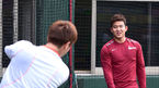 [OSEN=목동,박준형 기자] 3일 오후 서울 목동구장에서 열린 2014 한국야쿠르트 세븐 프로야구 넥센 히어로즈와 롯데 자이언츠의 경기에 앞서 넥센 김민성이 롯데 강민호에게 배팅볼을 던져주고 있다. 이날 경기에 넥센과 롯데는