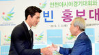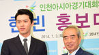 [OSEN=최규한 기자] 배우 현빈이 3일 오전 서울 중구 프레스센터에서 열린 '2014인천아시아경기대회 홍보대사 위촉식'에 참석해 김영수 조직위원장으로 부터 위촉패를 전달받고 있다. 조직위는 오는 9월 개막하는 인천아시안게임