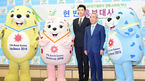 [OSEN=최규한 기자] 배우 현빈과 김영수 조직위원장이 3일 오전 서울 중구 프레스센터에서 열린 '2014인천아시아경기대회 홍보대사 위촉식'에 참석해 물범 마스코트들과 기념촬영을 하고 있다. 조직위는 오는 9월 개막하는 인천아