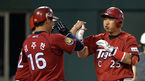 [OSEN=목동, 이대선 기자] 4일 오후 서울 목동야구장에서 '2014 한국야쿠르트 세븐 프로야구' 넥센 히어로즈와 KIA 타이거즈의 경기가 열렸다. 5회초 2사 만루에서 KIA 이범호가 만루 홈런을 치고 홈에서 동료들과 하이파이브를 하고