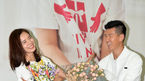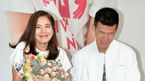[OSEN=이대선 기자] 4일 오후 서울 합정동 홀트아동복지회에서 션-정혜영 가족 에세이집 '오늘 더 행복해' 출간기념 기자간담회가 열렸다. 기자간담회에 참석한 션이 아내 정혜졍에게 꽃다발을 건네고 있다. '기부 천사'로 널리