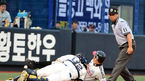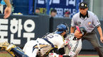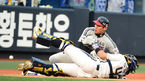 [OSEN=창원, 지형준 기자] 5일 오후 창원시 마산구장에서 '2014 한국야쿠르트 세븐 프로야구' NC 다이노스와 LG 트윈스의 경기가 열렸다. 4회초 무사 1루에서 LG 오지환이 손주인의 3루땅볼에 3루까지 내달리며 NC 김태군과 충돌하고