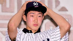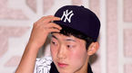 [OSEN=최규한 기자] 미국 메이저리그 뉴욕 양키스에 신인지명된 박효준이 5일 오후 서울 광장동 워커힐호텔에서 열린 입단식에 참석해 유니폼을 전달받은 뒤 자리에 앉고있다. 1996년 4월7일 태어난 박효준은 188cm, 77kg 신체조건을
