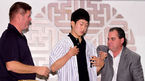 [OSEN=최규한 기자] 미국 메이저리그 뉴욕 양키스에 신인지명된 박효준이 5일 오후 서울 광장동 워커힐호텔에서 열린 입단식에 참석해 유니폼을 전달받은 뒤 자리에 앉고 있다. 1996년 4월7일 태어난 박효준은 188cm, 77kg 신체조건을
