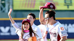 [OSEN=목동, 최규한 기자] 6일 오후 서울 목동야구장에서 '2014 한국야쿠르트 세븐 프로야구' 넥센 히어로즈와 KIA 타이거즈의 경기가 열렸다. 시구-시타자로 나선 배우 박준금과 방송인 지상렬이 팬들에게 인사하고 있다. 넥센 선