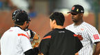 [OSEN=사직,박준형 기자] 7일 오후 부산 사직구장에서 열린 2014 한국야쿠르트 세븐 프로야구 롯데 자이언츠와 SK 와이번스의 경기, 4회초 4실점 역전 허용한 롯데 선발투수 유먼이 정민태 투수코치와 이야기를 나누고 있다. 위닝시
