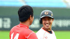 [OSEN=사직,박준형 기자] 7일 오후 부산 사직구장에서 열린 2014 한국야쿠르트 세븐 프로야구 롯데 자이언츠와 SK 와이번스의 경기전 부상 복귀한 SK 최정이 롯데 손아섭과 이야기를 나누고 있다. 위닝시리즈를 확정지은 롯데는 좌