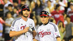 [OSEN=잠실, 정송이 기자] 8일 오후 서울 잠실구장에서 열린 2014 한국야쿠르트 세븐 프로야구 LG 트윈스와 두산 베어스 경기, 5회말 1사 2,3루 두산 변진수의 투구에 맞고 1루로 출루한 스나이더가 김민호 코치로 부터 격려를 받고