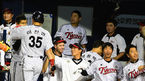 [OSEN=잠실, 정송이 기자] 8일 오후 서울 잠실구장에서 열린 2014 한국야쿠르트 세븐 프로야구 LG 트윈스와 두산 베어스 경기, 5회 말 2사 만루 상황에서 LG 김용의의 2타점 적시타로 홈을 밟은 이진영이 덕아웃에서 동료들과 하이파